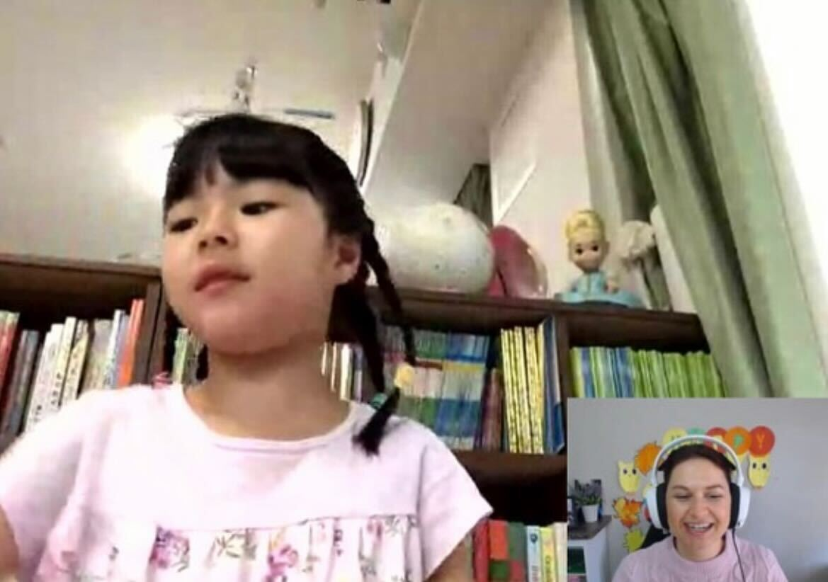センテンスや発音をネイティブの先生に直してもらいながら、娘がネガティブにならないように、簡単なレベルで達成感を味わい、楽しくレッスンができるようにいたしました。