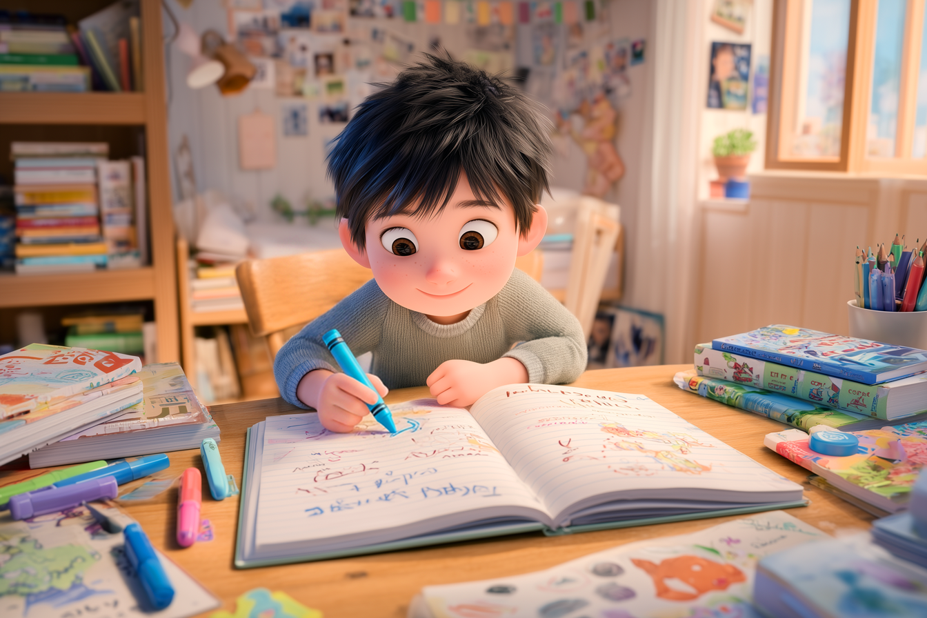 絵を描いてもOK。想像力と語彙力を同時に伸ばせます。