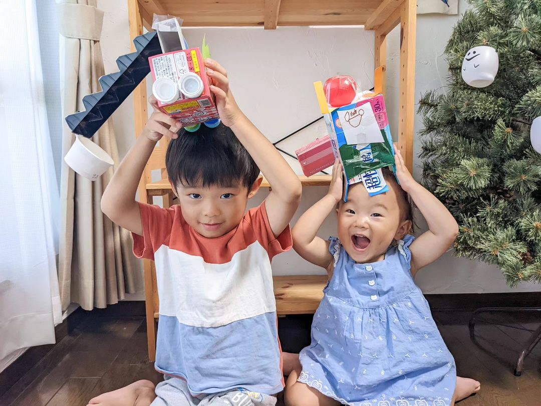 セミグランプリ3組目はご兄妹で犬やショベルカーなど13作品も作ってくれた「好きなもの工作」が選ばれました。マスクや食品の空き箱、アイスの容器、ペットボトルキャップなど使い終わったものを一緒に集めてみたらあっという間に買い物カゴいっぱいになったそうです。作った作品は写真に撮ってアルバムに丁寧に保管しておくアイディアも素敵ですね。