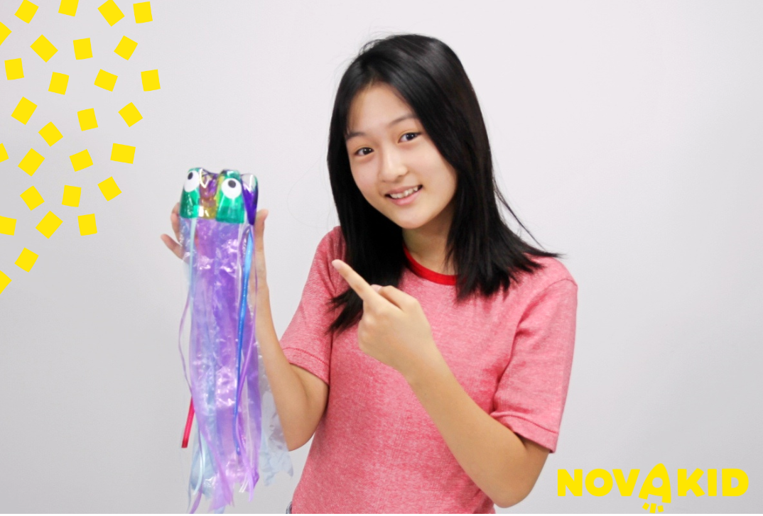 そこでノバキッドは、今年4月に行われたアースデイ東京2023でオープニングスピーチを務めるなど、TVや各メディアから注目されている環境問題に取り組む小学生起業家「mocomocoちゃん」とコラボし、SDGsについて学びながら英語でアップサイクルの工作にチャレンジできるワークショップ動画を製作。地球環境やアップサイクル工作について、日本語と英語で楽しく紹介してくれている動画はコンテストサイト内やYoutubeで無料配信します。