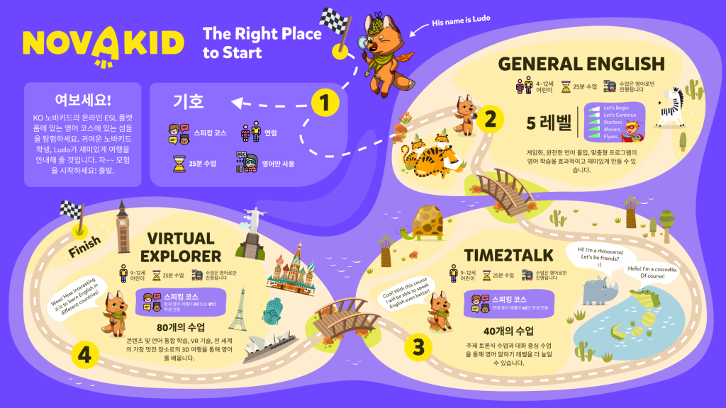모든 노바키드 영어 학습 프로그램은 유럽 언어 공통 기준(CEFR)에 따라 개발되었으며, 콘텐츠를 제작할 때 아이들의 연령차이를 고려했습니다.