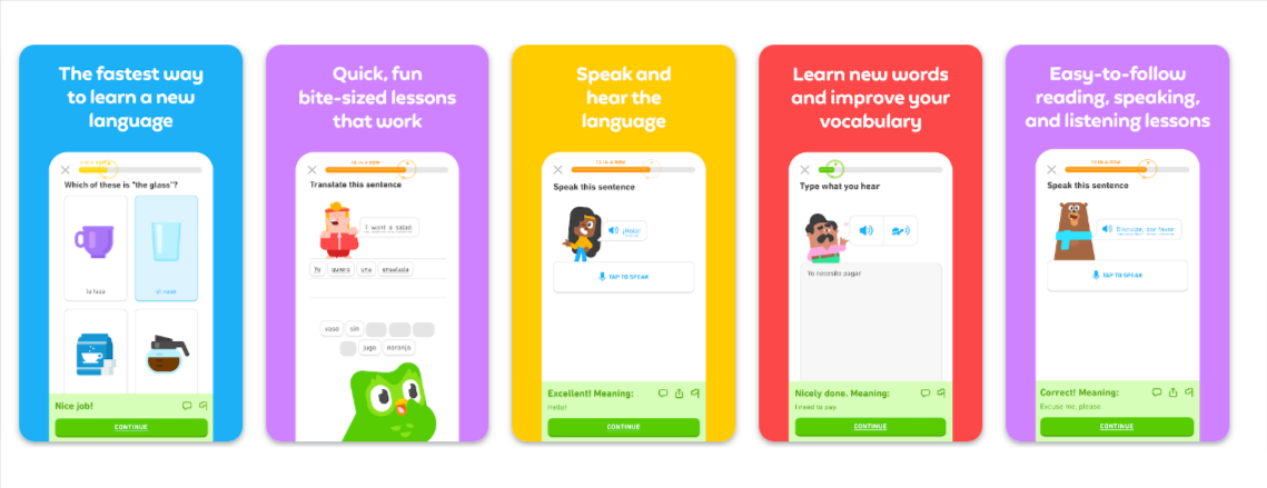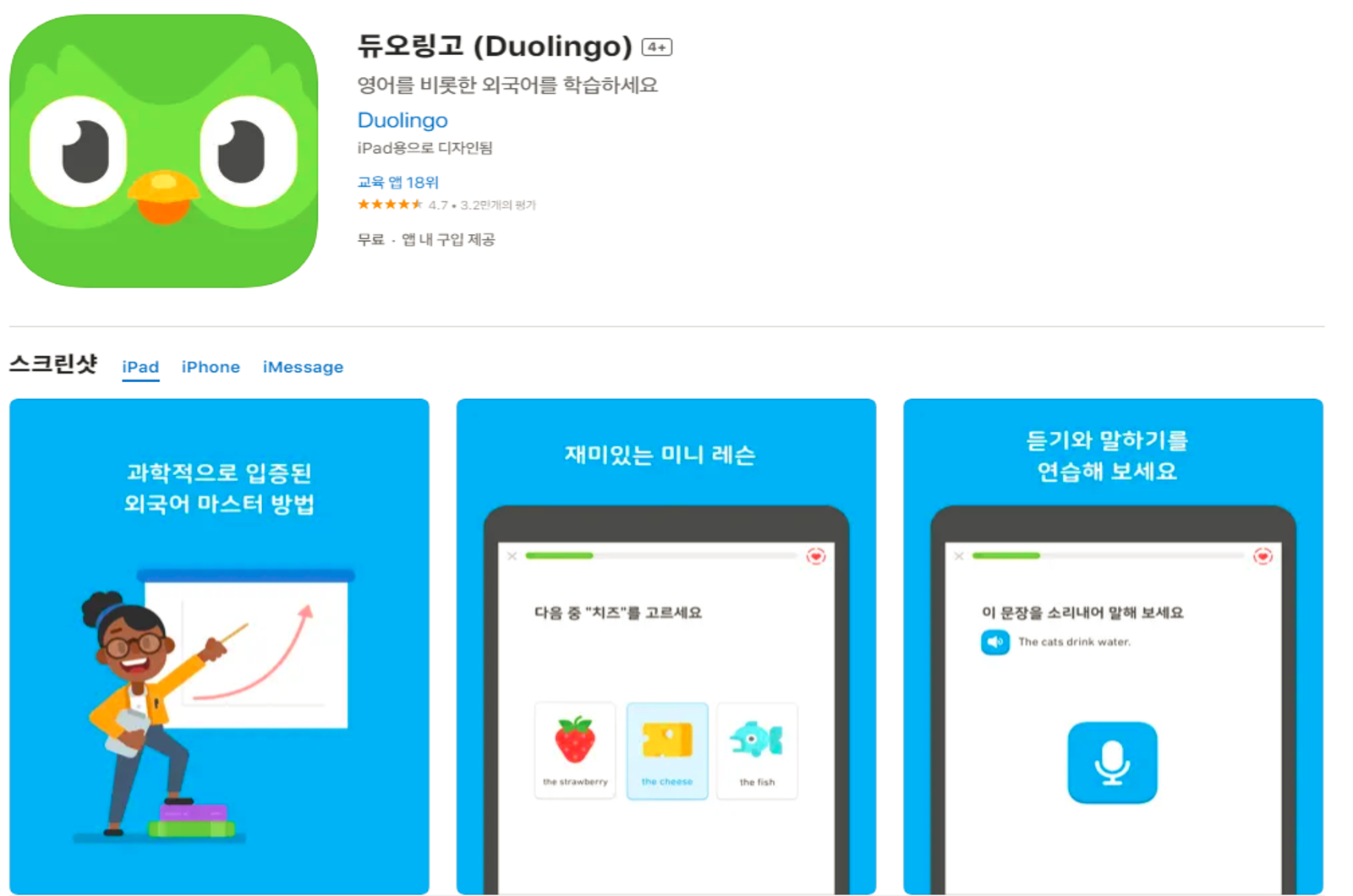 듀오링고(Duolingo)는 세계적으로 많이 이용되고 유명한 외국어 공부 앱입니다. 듀오링고의 최대 장점이자, 영어에 입문자에게 추천해 드리는 이유는 게임 형식으로 영어 학습이 진행되는 앱이기 때문입니다. 무엇보다 초기에 영어를 시작하실 때는 문법, 단어, 어휘, 회화 등도 모두 중요하지만 무엇보다도 영어에 대한 거부감을 낮추고, 재미있게 즐길 수 있는 것이 중요합니다. 듀오링고는 게임을 하면서 영어를 배울 수 있는 무료 영어 공부 앱입니다. 다양한 색채와 섹션 별로 진행할 수 있는 영어 수업은 아이들과 어른들 모두에게 간단하고 즐겁게 영어 실력을 향상시킬 수 있도록 도움을 줄 수 있습니다.