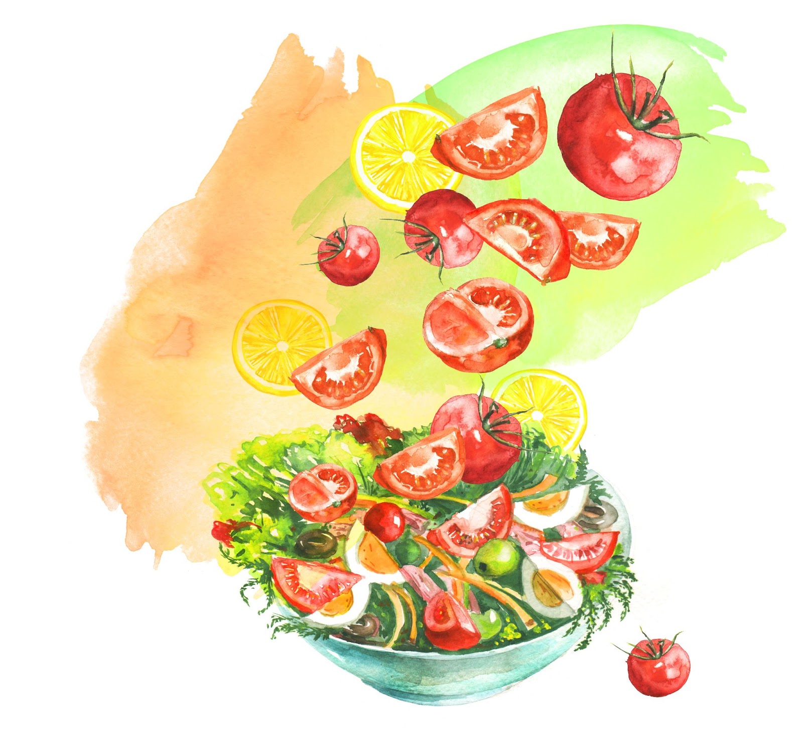 - Przygotowuj lekkie posiłki: Lato to nie najlepszy czas na ciężkie, tłuste dania. Wybieraj lekkie sałatki, dania na parze, grillowane warzywa i białe mięso.