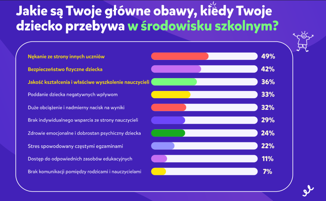 Z badania „Opinia rodziców na temat edukacji publicznej w Polsce” przeprowadzonego przez Novakid wynika, że niemal połowa rodziców w Polsce obawia się, że ich dziecko może stać się ofiarą bullyingu. Ten wynik bezpośrednio potwierdza potrzebę działania w tym zakresie.