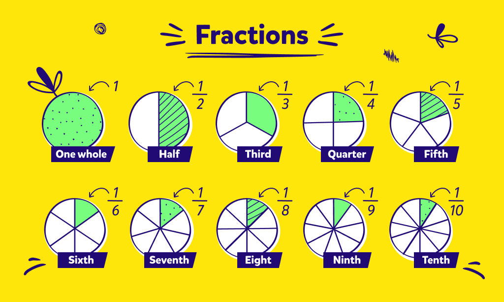 - Ilustracje dla dzieci wyjaśniające koncept ułamków
