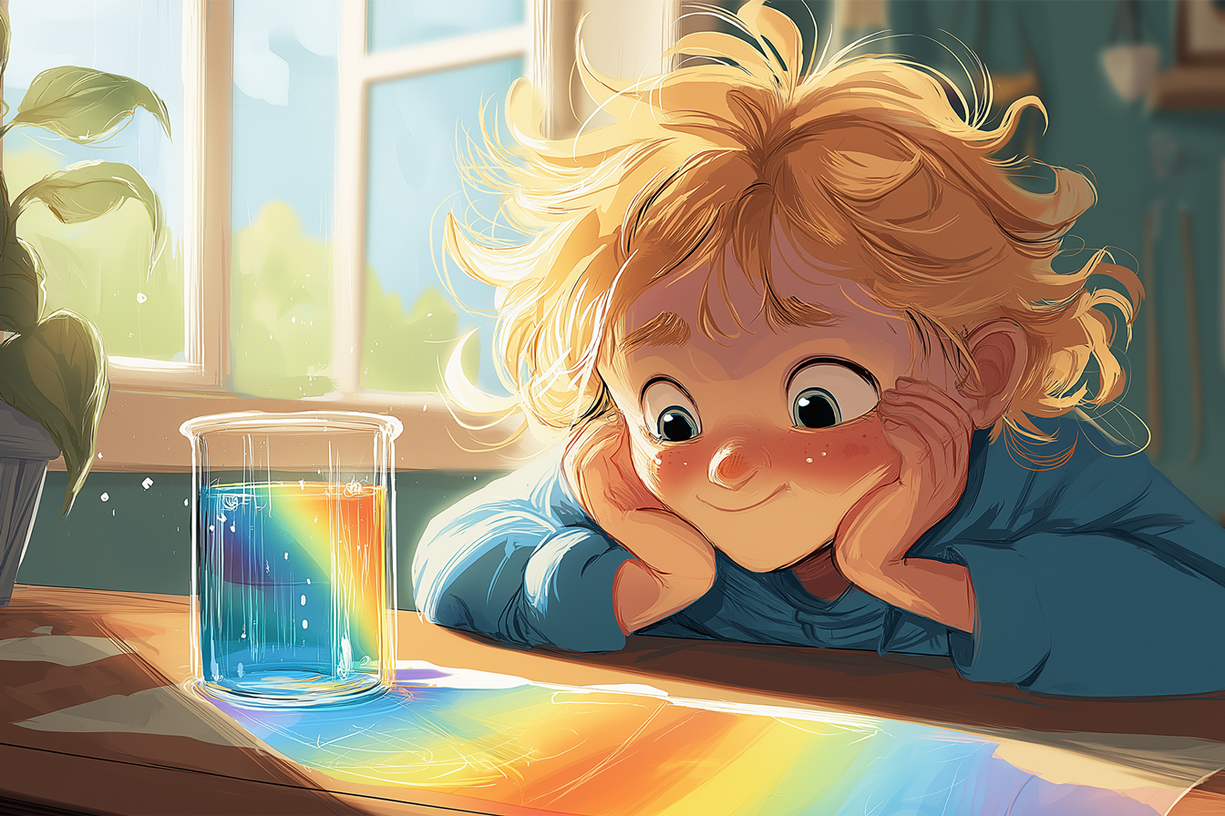 Pryzmat wywołuje zjawisko bardzo podobne do tego, co dzieje się wewnątrz kropli. Światło, które wydaje się białe, w rzeczywistości jest mieszaniną światła o różnych długościach fal. Każda z tych długości załamuje się pod innym kątem, co skutkuje rozkładem światła białego na czerwony, pomarańczowy, żółty, zielony i kolejne barwy. Dzięki temu dzieci mogą łatwiej zrozumieć, że tęcza to zjawisko optyczne, a nie coś fizycznego znajdującego się na niebie.