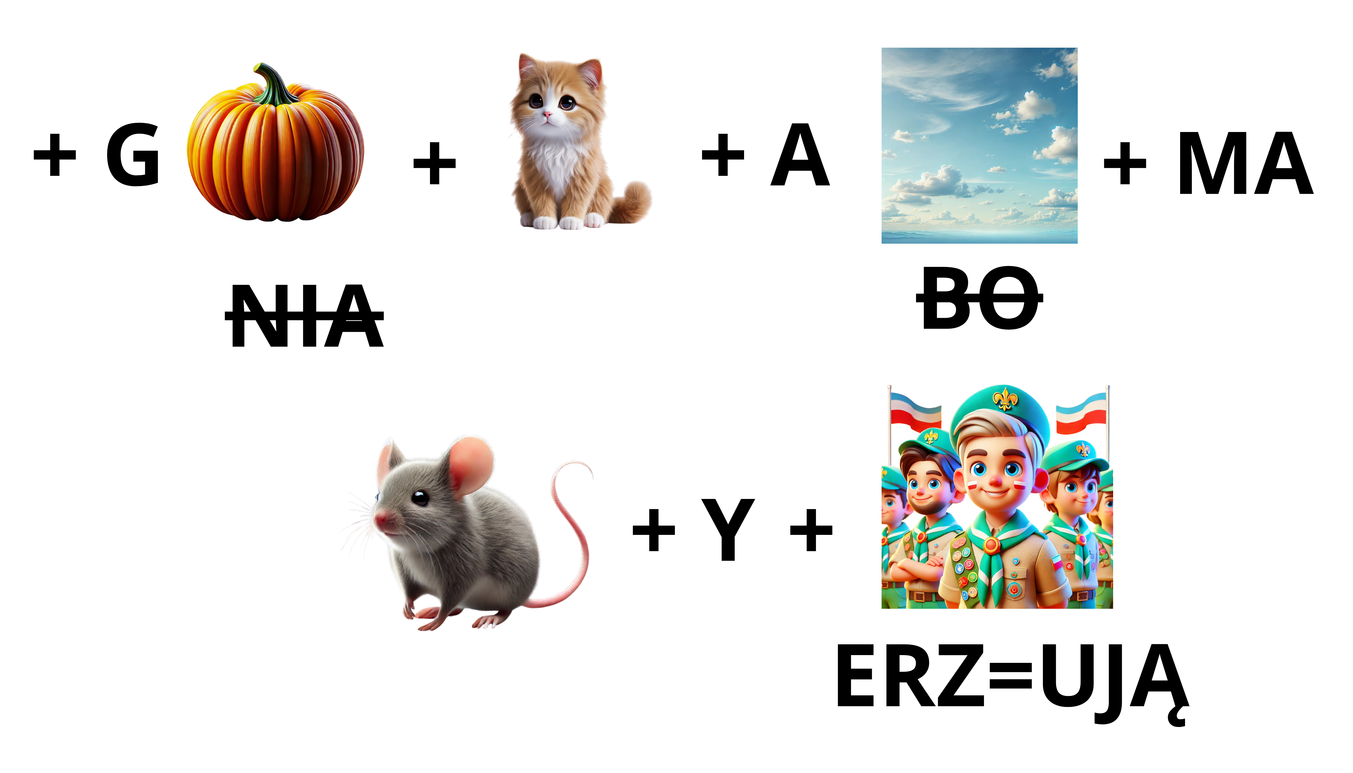 Rebusy to zagadki obrazkowo-tekstowe, które wymagają od dziecka analizy, kojarzenia symboli, liter, obrazków oraz logicznego myślenia. Mogą zawierać różne elementy, takie jak litery, cyfry, rysunki czy skróty, które po połączeniu tworzą określone słowo lub frazę.