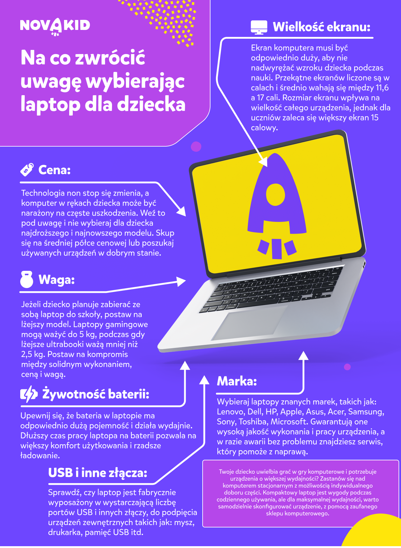 Aby odpowiedzieć na to pytanie, każdy rodzic powinien zweryfikować odpowiedzi na 5 poniższych wytycznych. Przed zakupem własnego komputera dla dziecka, zwróć uwagę na: