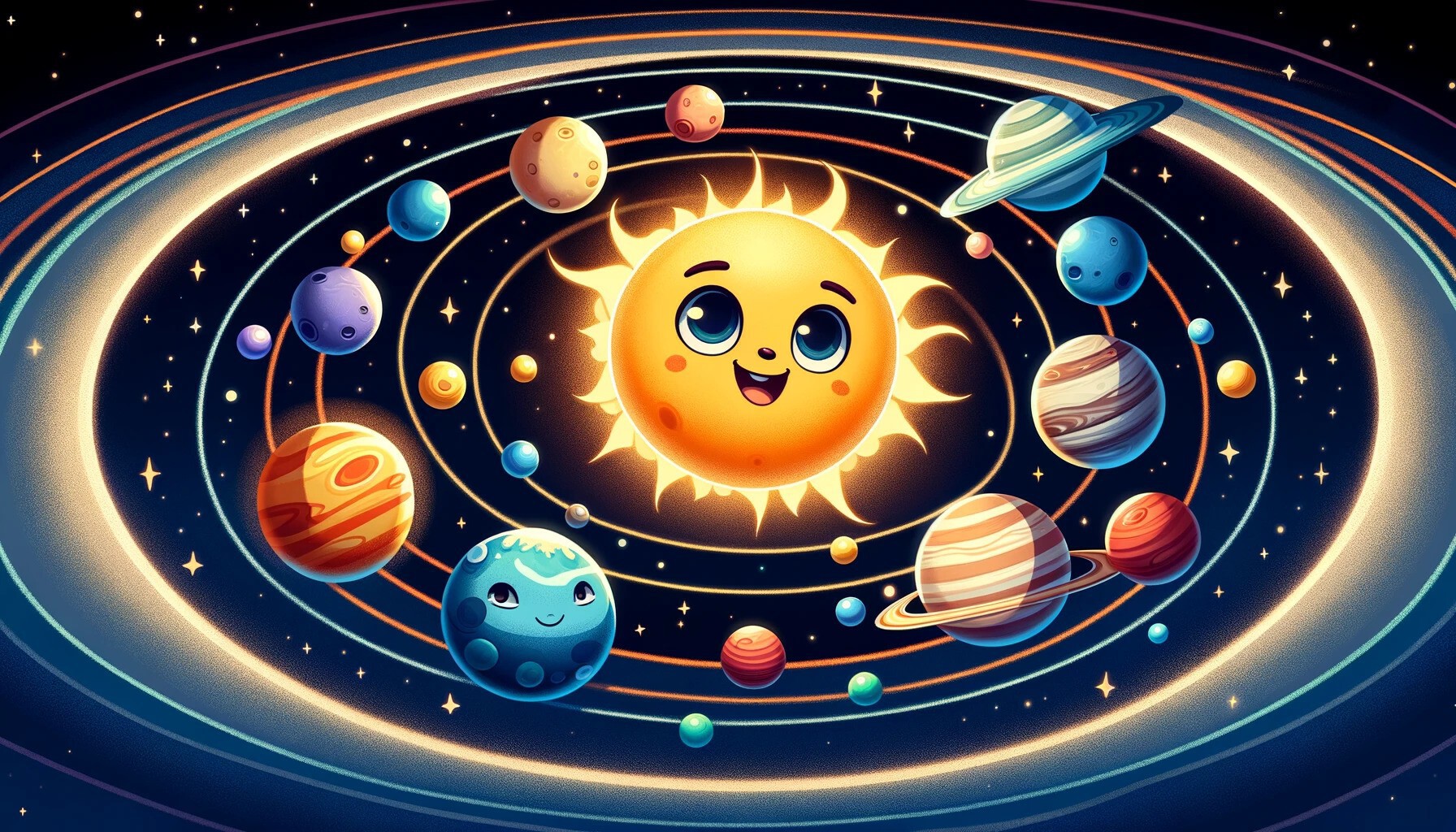 W jego centrum znajduje się Słońce, gwiazda, która dostarcza światła i ciepła niezbędnego do życia na Ziemi. Wokół Słońca krąży osiem znanych planet: Merkury, Wenus, Ziemia, Mars, Jowisz, Saturn, Uran, Neptun. Do Układu Słonecznego należą również planety karłowate, takie jak Pluton, liczne księżyce, komety, asteroidy oraz pas Kuipera i obłok Oorta, które składają się z mniejszych ciał niebieskich.