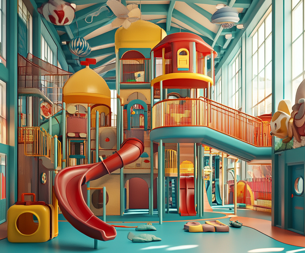 Copiii pot explora leagăne, trambuline, locuri de cățărat, și se pot antrena la coșul de baschet sau la tir cu arcul. În cazul vremii nefavorabile, evenimentele se pot desfășura în interior, unde copiii pot construi orașe lego, se pot cățăra sau pot participa la jocuri de rol într-un mediu confortabil și sigur.