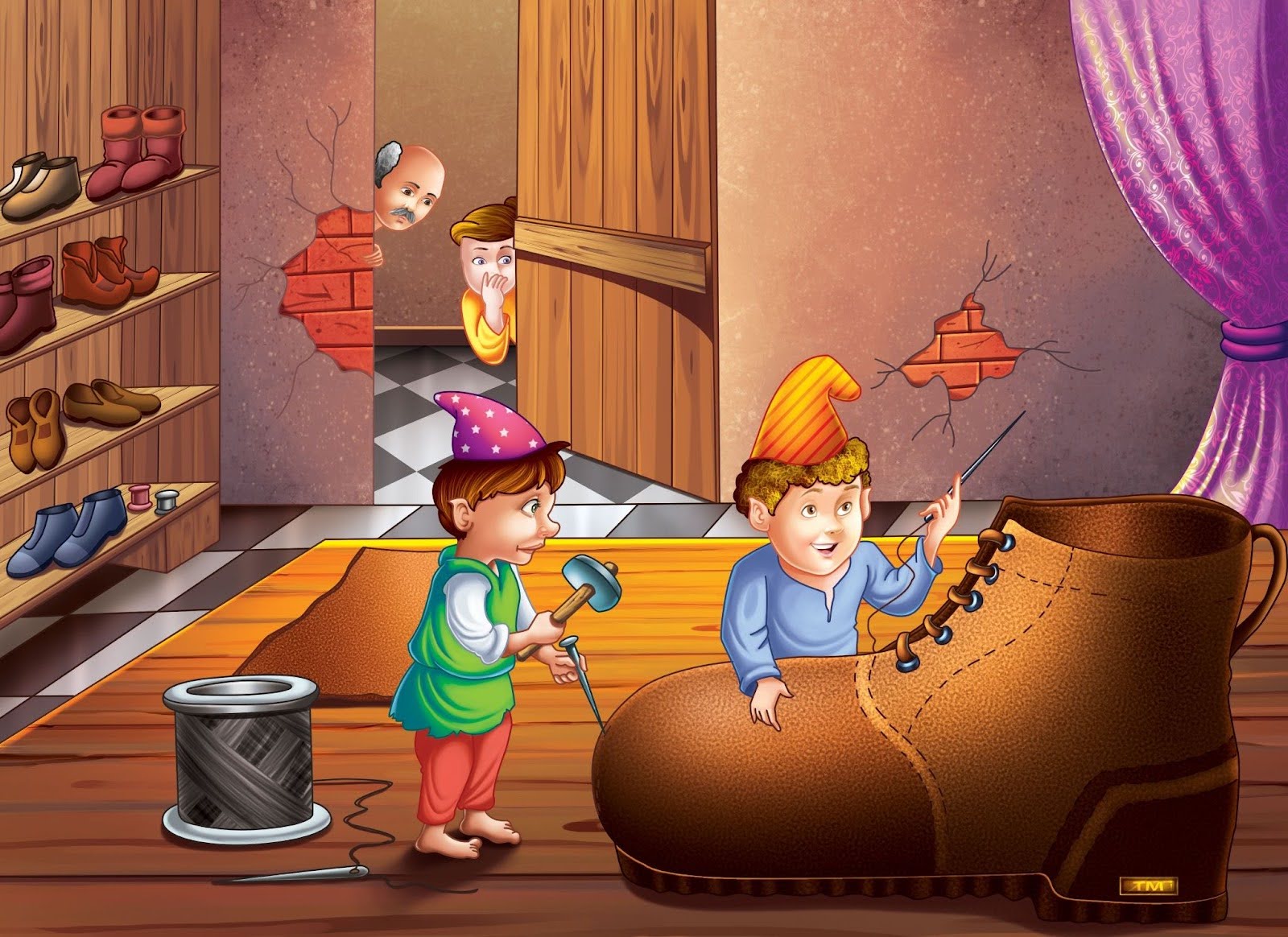 Un cizmar sărăcit rămâne cu suficient material doar pentru a face o pereche de pantofi. După ce croiește pielea, se trezește dimineața următoare și găsește pantofii deja făcuți.