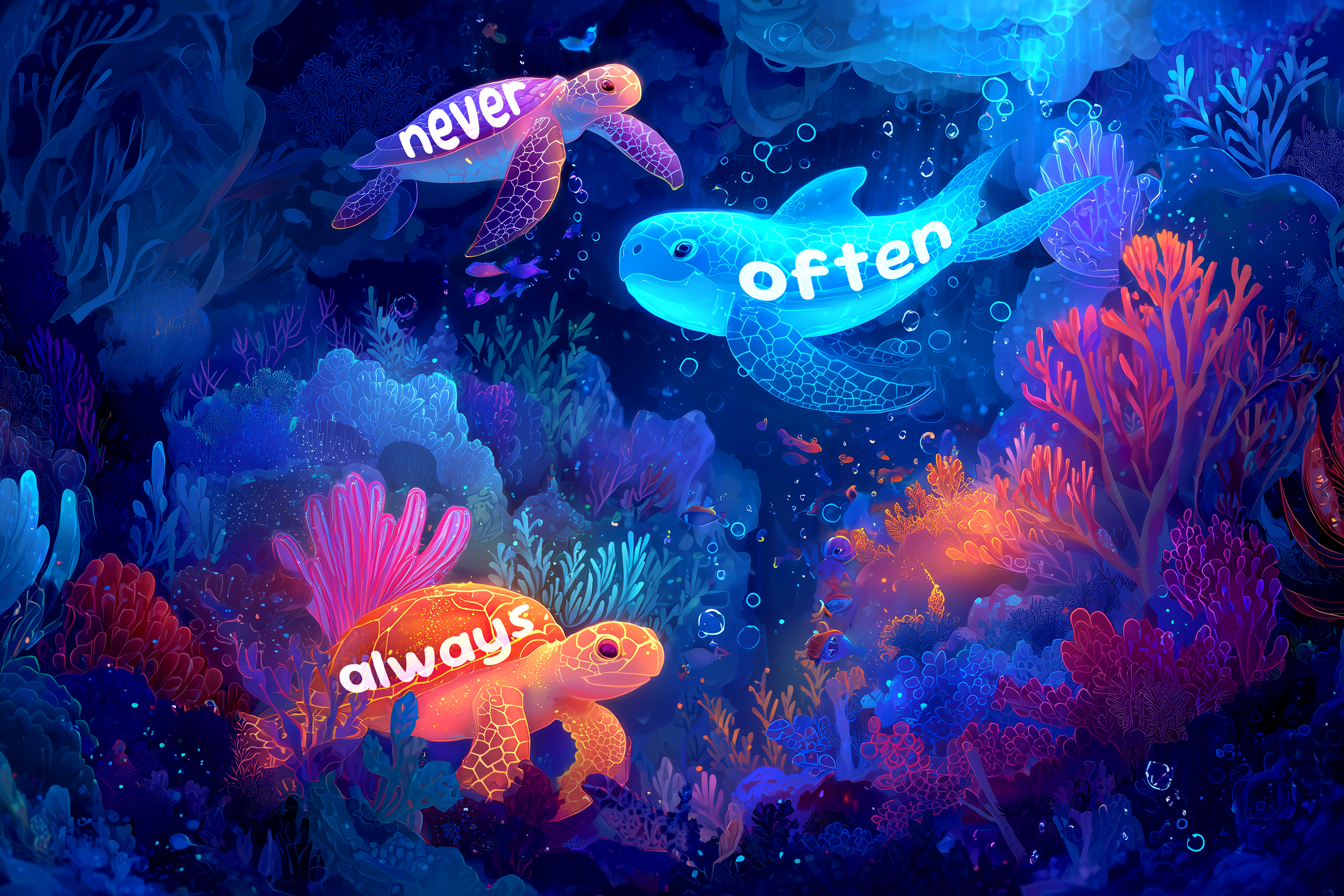 Gândește-te la ele ca la un termometru al obiceiurilor tale zilnice. Îți arată dacă faci ceva tot timpul, din când în când sau niciodată. De aceea, le auzim și le folosim atât de des în conversațiile noastre zilnice.