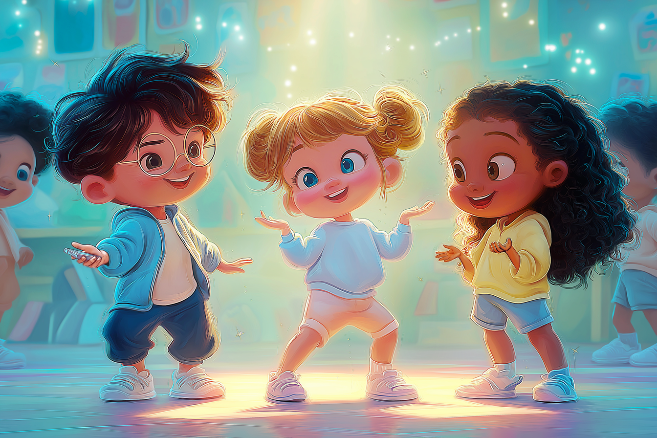 Copilul mimează o acțiune (ex. să danseze), iar tu trebuie să ghicești propoziția completă cu adverbul corect: „He sometimes dances!” Este o metodă excelentă pentru a înțelege frecvența acțiunilor și a dezvolta spontaneitatea în exprimare.