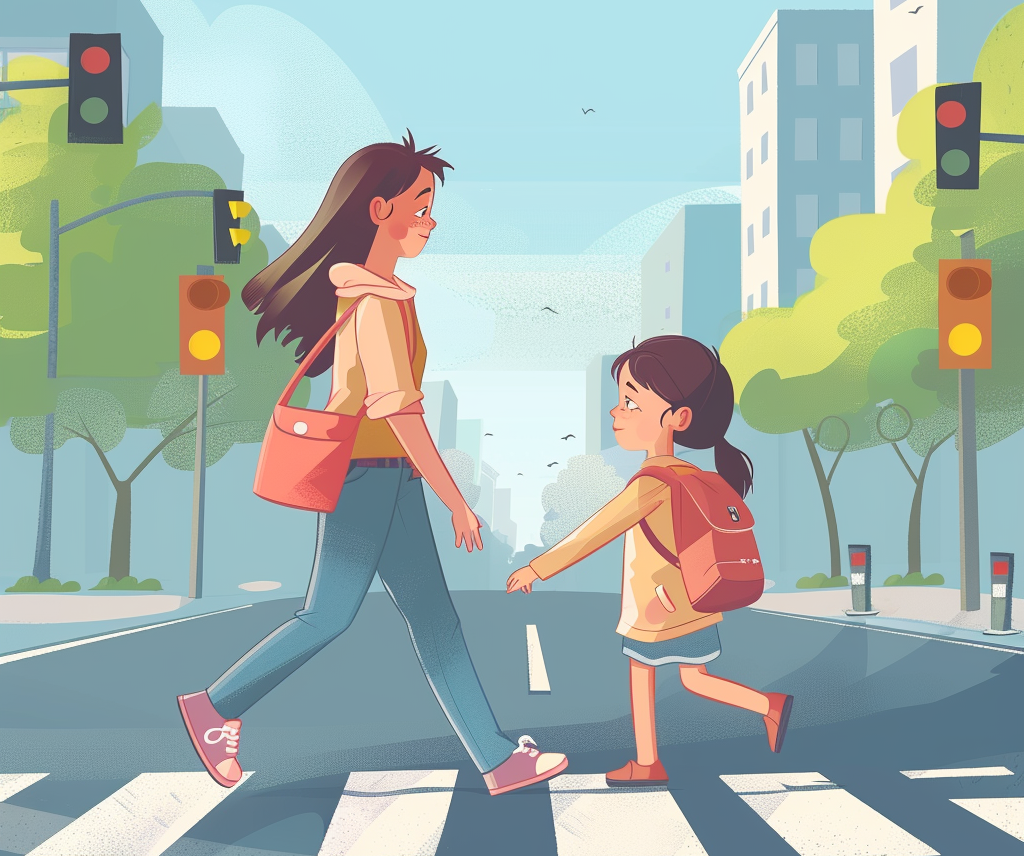Supraveghere constantă: Fii mereu alături de copilul tău atunci când traversează strada. Până la o vârstă la care poți avea încredere că respectă regulile de circulație pentru copii, este cel mai bine ca părintele să fie prezent.