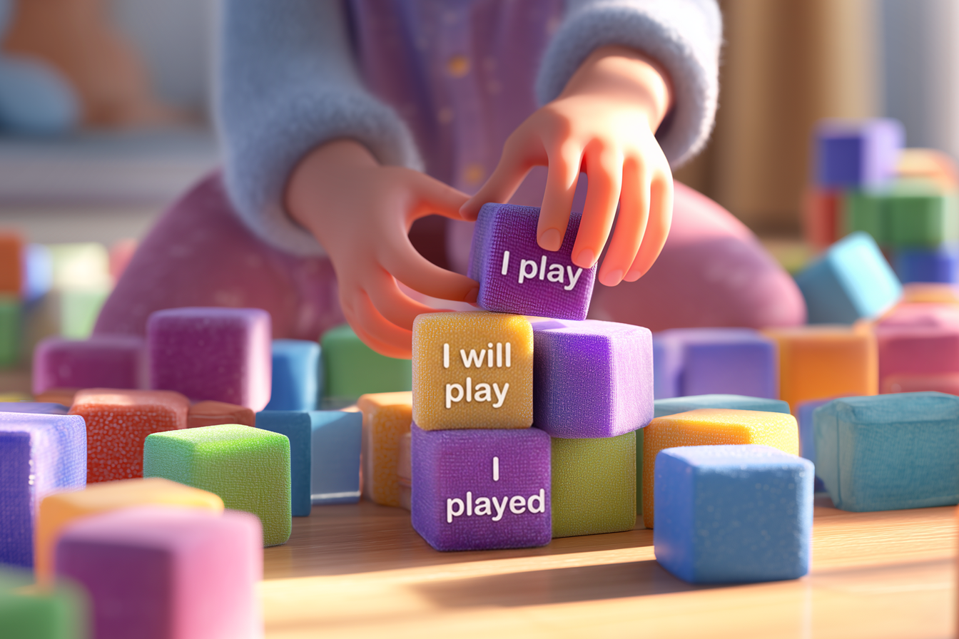 Cele 4 timpuri pe care un copil le folosește cel mai des (explicate simplu, cu „play”)