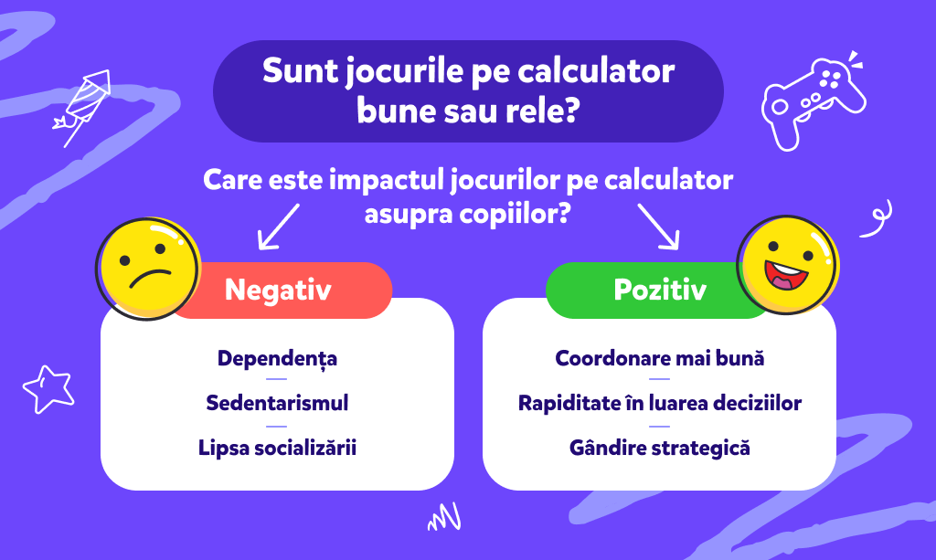 Probabil ai auzit adesea că jocurile pe calculator sunt nocive pentru copii, că duc la dependența de calculator și că ar putea afecta negativ dezvoltarea lor.