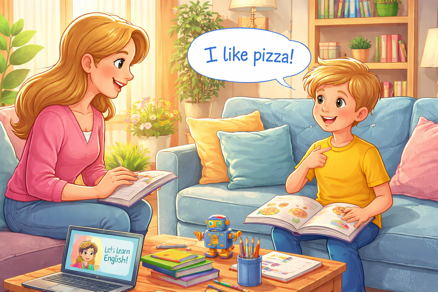 Aceste micro-dialoguri creează reflexul de dialog în engleză fără stresul notelor de la școală. În timp, copilul nu va mai traduce mental cuvintele și îți va răspunde natural.