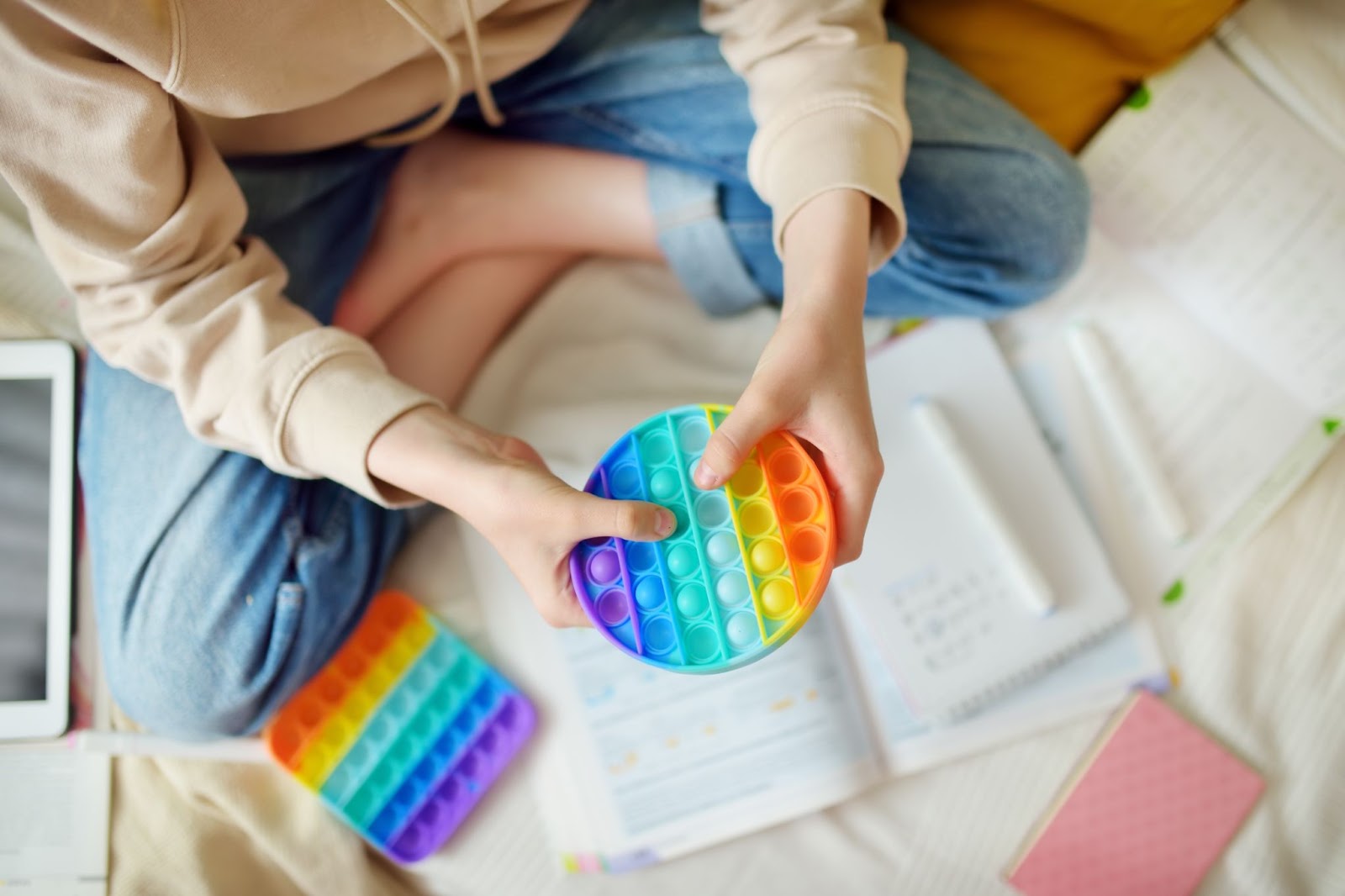 - Poți folosi diverse jucării senzoriale pentru momentele în care se fâțâie și copilul nu acordă atenție lecțiilor. Jucăriile senzoriale sunt perfecte pentru ca cel mic să-și poată folosi mâinile fără să se distragă de la sarcina sa principală. Acest lucru înseamnă că își consumă energia fizică fără a-și dori alte activități și jocuri, atunci când îi este greu să se concentreze.
