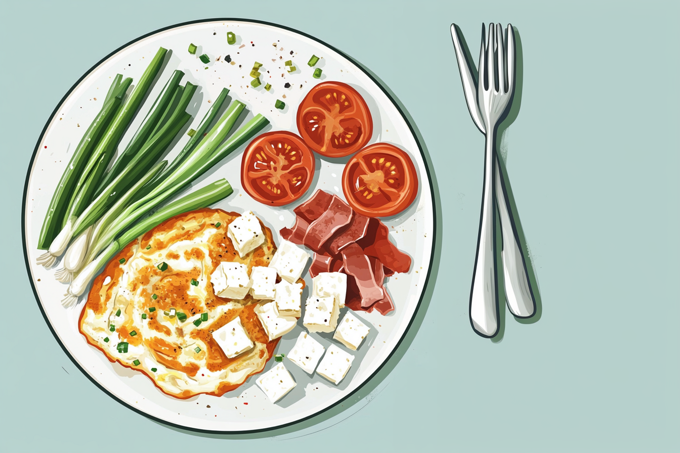 - Omletă cu brânză și roșii (omelet with cheese and tomatoes)