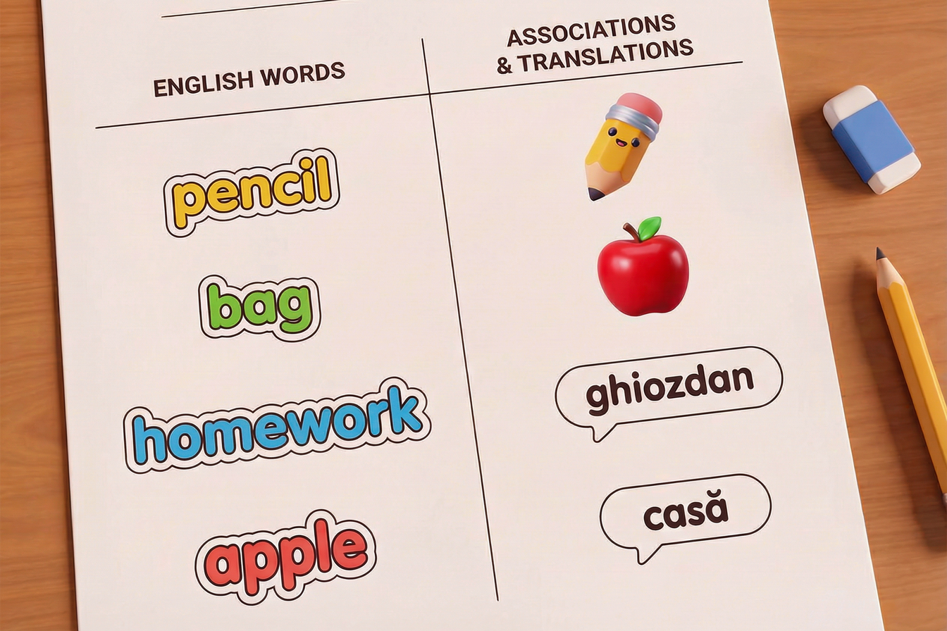 Tradițional, la orele de limba engleză, copiii învață vocabular roman englez din liste: 10 cuvinte, traducerea lor și, eventual, o mică verificare. Și da, metoda ajută la început. Dar, în timp, chiar dacă copilul știe cuvintele pe hârtie, s-ar putea să nu le folosească atunci când vorbește sau pur și simplu să le uite exact când are nevoie de ele.