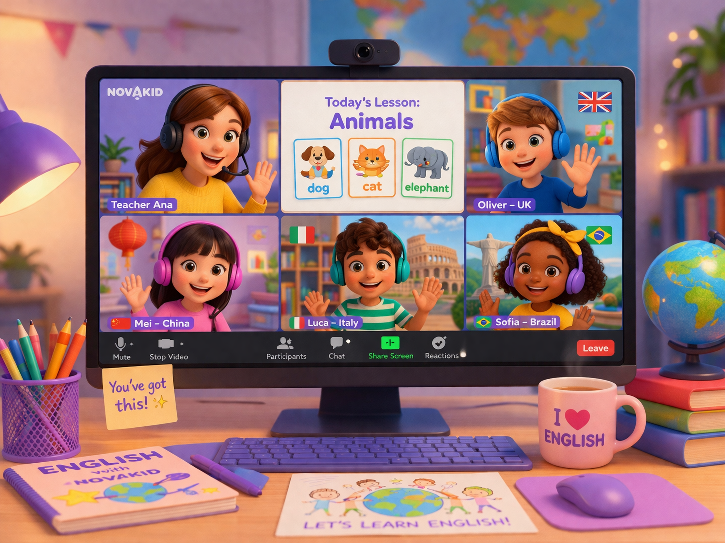 La Novakid, copilul tău folosește activ engleza de la prima lecție. Lecțiile îmbină o metodă interactivă de predare cu multe jocuri în engleză, astfel încât fiecare sesiune devine o experiență de neuitat. Mai mult, cu World Kids Academy are șansa de a practica arta conversației în grupuri cu copii din toată lumea.