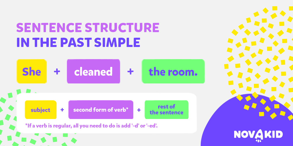 Subiect + verb la forma trecută (a doua formă a verbului) + restul propoziției (obiect).