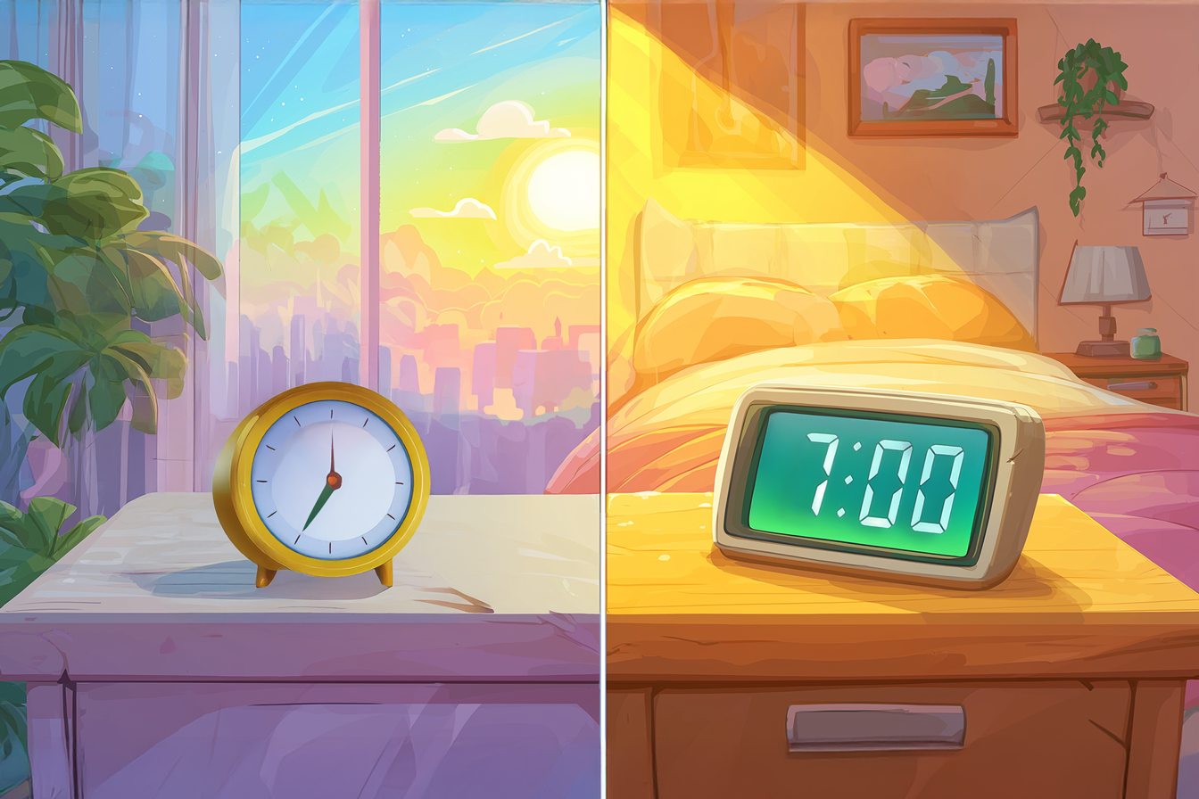 - Utilizează ceasuri ilustrate cu scene de dimineață/seară