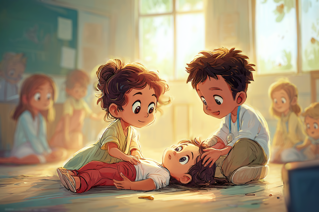 - Activitate: Un joc de rol în care copiii joacă scene cu cineva care are nevoie de ajutor (un copil nou la școală, cineva trist etc.).