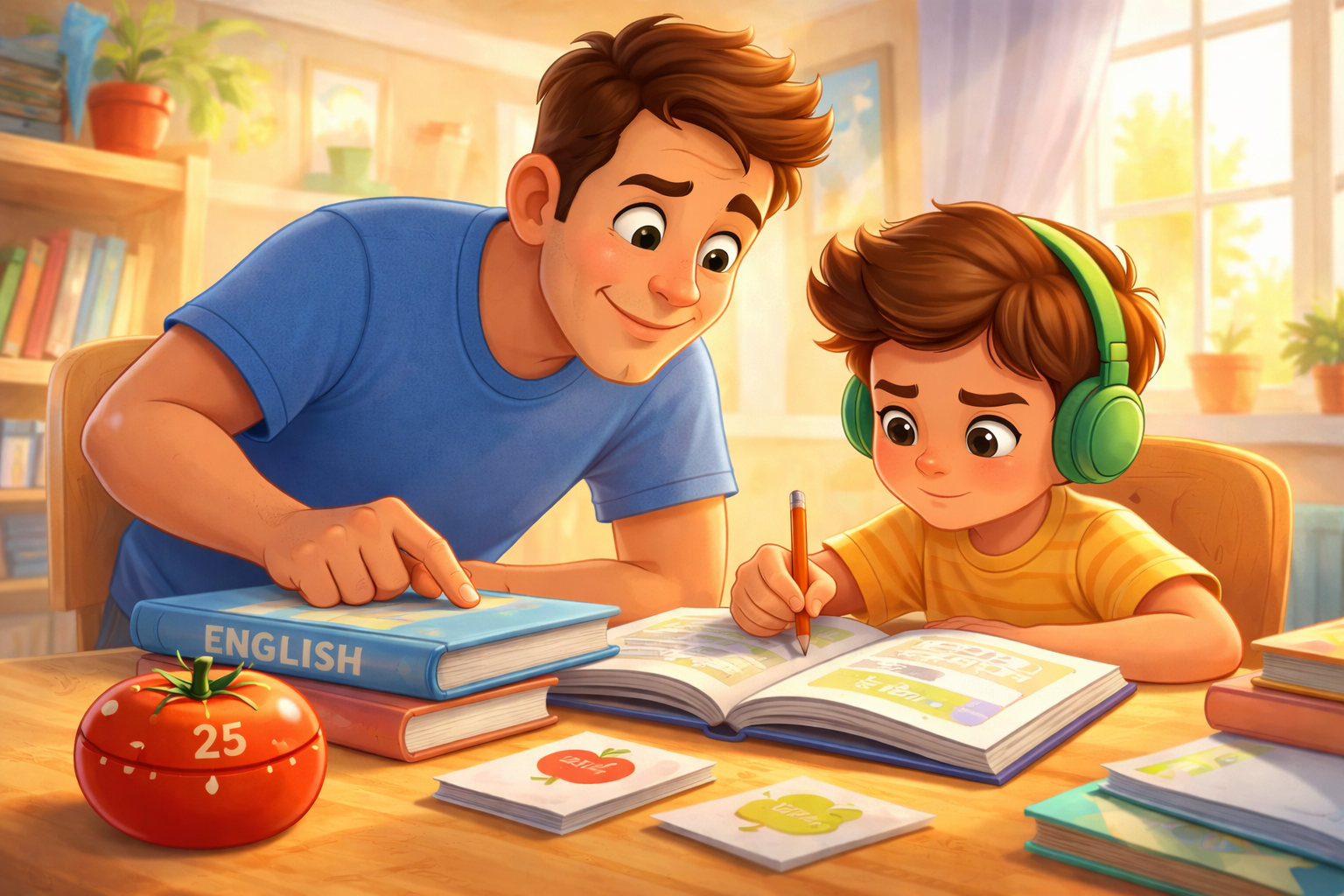 O soluție simplă, folosită de elevi, studenți și chiar de adulții care învață limbi străine, este Tehnica Pomodoro, o metodă de gestionare a timpului care face învățarea mai ușoară și mai plăcută. Chiar dacă a fost creată pentru productivitate, Metoda Pomodoro se potrivește foarte bine și atunci când copilul învață engleza, pentru că îl ajută să rămână concentrat fără să simtă că studiază prea mult.