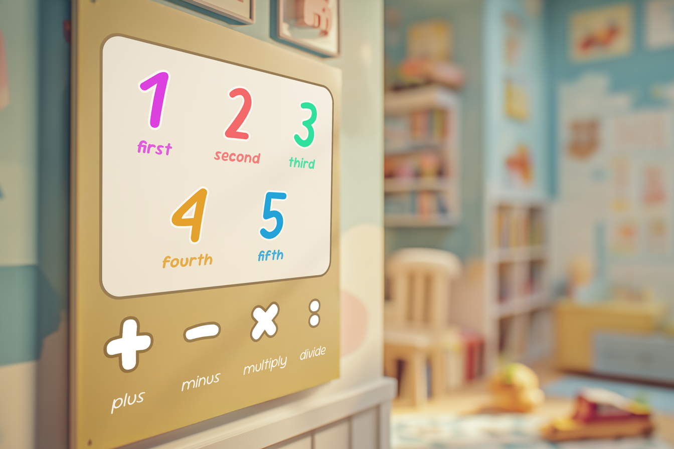 - Vocabular general și gândire logică – cuvinte precum divide (diviziune matematică), equal (egal) sau greater than (mai mare decât) apar în multe contexte și ajută la dezvoltarea limbajului logic.