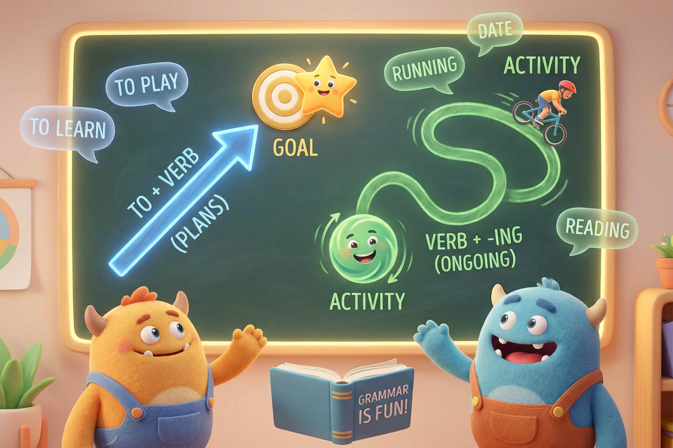 Verbe cu TO sau -ING: cum le explici ușor copilului