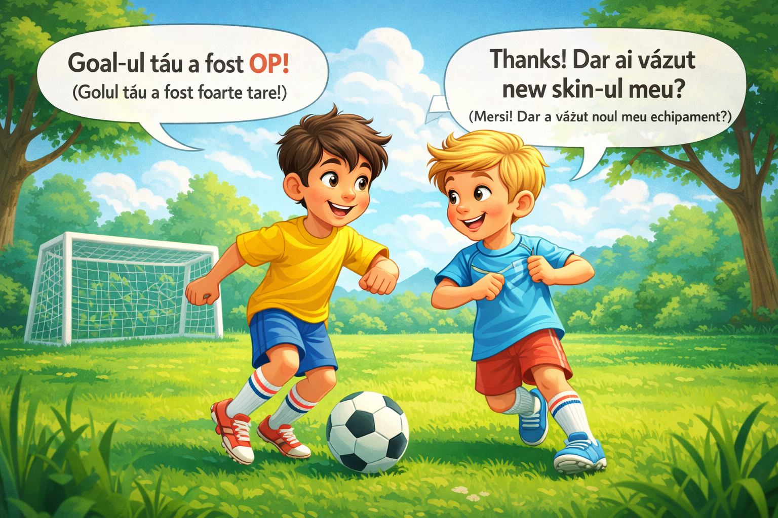 Alt exemplu des întâlnit este „Sunt stressed” (Sunt stresat) sau „Am un deadline mâine” (Am un termen limită mâine). Aici vedem cum cuvinte împrumutate din engleză intră direct în comunicarea în română, fără să pară ciudat pentru copii. Pentru ei, este o singură limbă funcțională, nu două sisteme separate, cum poate le percep adulții.