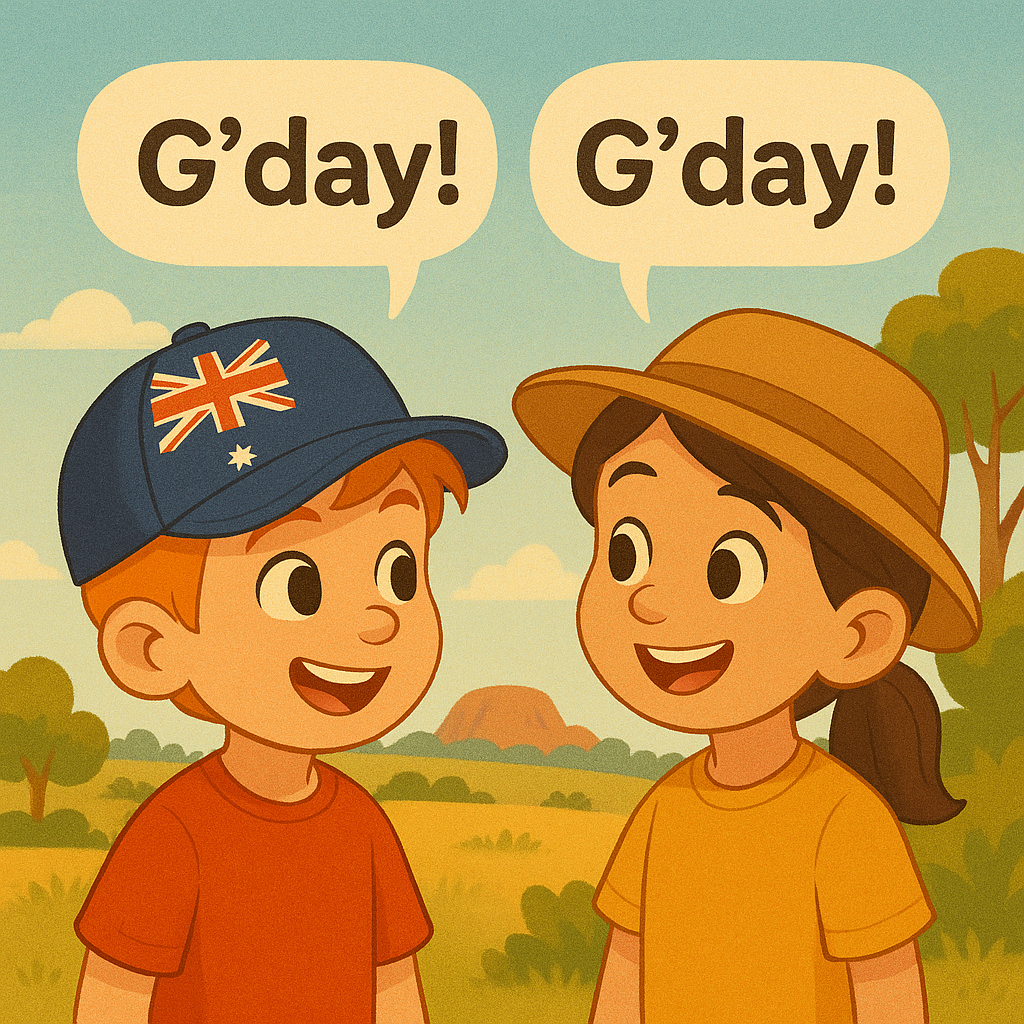 Avustralya İngilizcesinde günün vakti fark etmeksizin “merhaba” demek için yaygın olarak “G’day!” cümlesi kullanılır. Ancak elbette “Hello!”, “Hey!”, “Hi!”, gibi ünlemler de kullanılabilir.