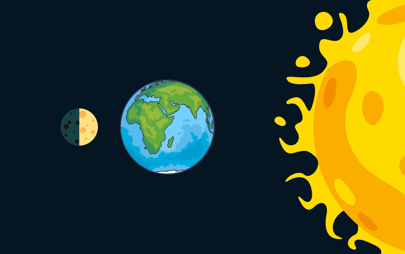 Bir diğer konu ise Ay’ın evrelerinin oluşma sebebi. Bu evreleri anlayabilmek için çocukların öncelikle Ay, Dünya ve Güneş’in hareketini kavraması gerekiyor. Ay, hem kendi etrafında hem de Dünya’nın etrafında döner. Dünyamız da hem kendi ekseni etrafında, hem de Ay ile birlikte güneşin etrafında döner.
