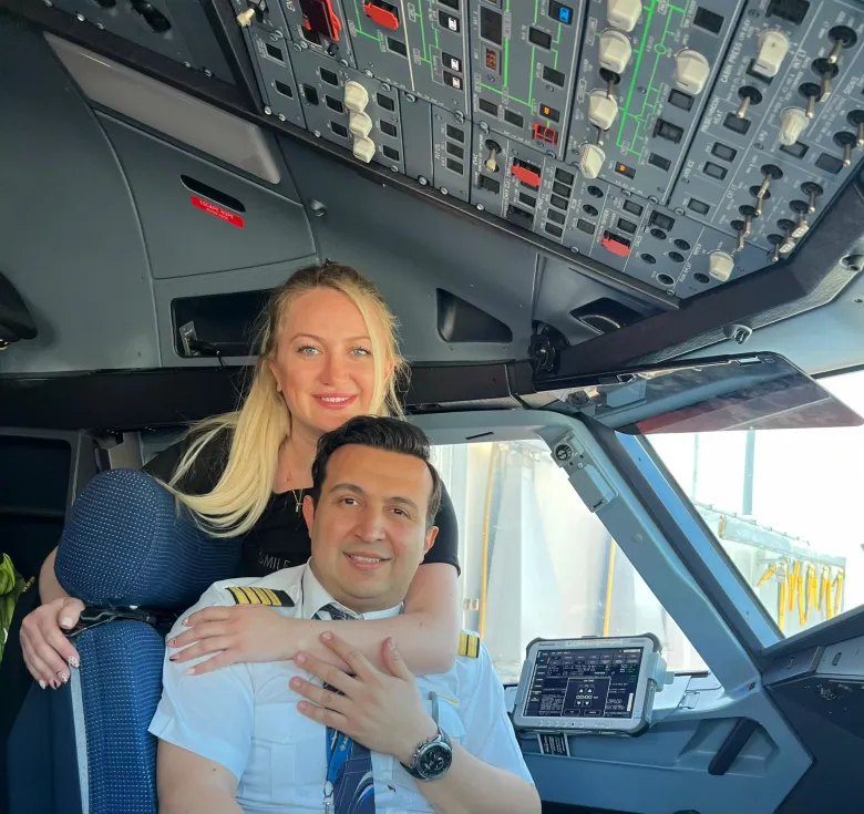Turgay ve Naz şu anda İstanbul’da yaşıyor. Onları bir araya getiren şey sadece evli olmaları ve havacılık sektöründe çalışmaları değil. Yabancı dil öğrenme tutkusu her ikisinin de hobisi ve yeteneklerini geliştirmek için seçtikleri bir yol, çünkü havacılık sektöründe İngilizce bilgisi çok önemli.