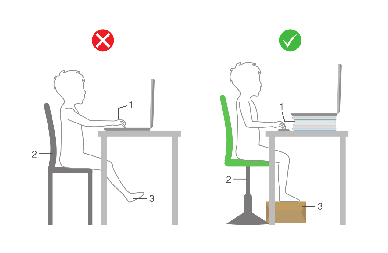 Masa ve sandalye arasında da 30 cm’lik bir boşluk olması gerekir. Özellikle çalışma sürecinde daha az mesafe gözlere ve omuriliğe zarar verebilir. Masadan 30 cm’den fazla uzakta kalmak da skolyoz gibi hastalıklara yol açabilir.