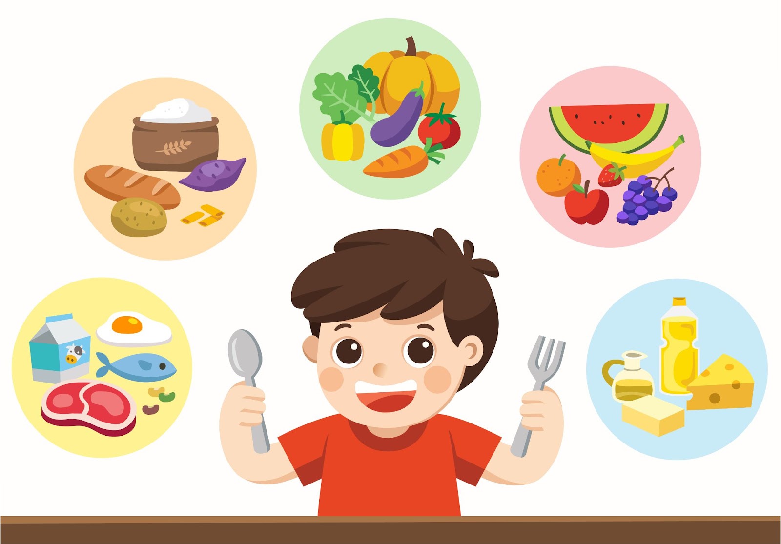 Çocuklar için sağlıklı beslenme listesinde beş besin grubundan gıdalar bulunmalıdır. Bu beş besin grubu ise tahıllar, sebzeler, meyveler, proteinler ve süt ürünlerini içerir.