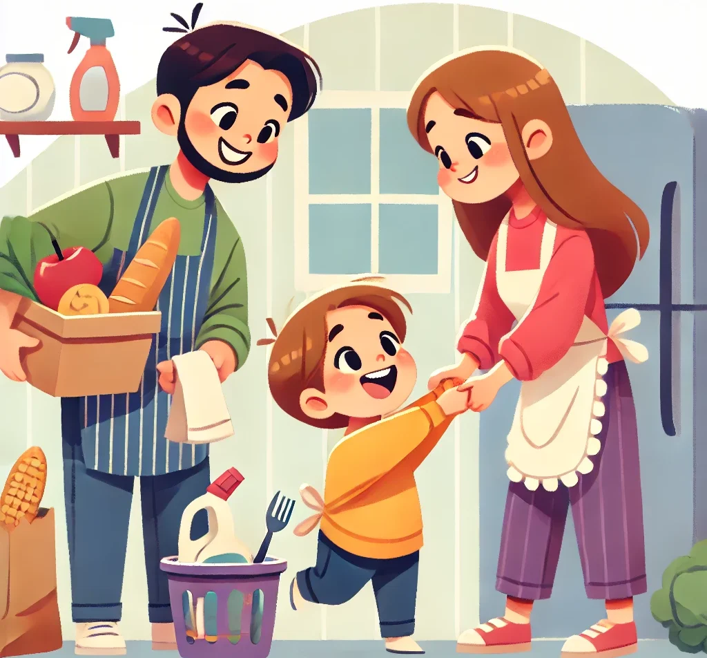 - Ailece yapılan işlerde görev almak: Sofrayı hazırlamaya yardımcı olmak veya alışverişten sonra poşetleri taşımak gibi sorumluluklar sık sık paylaşılabilir.