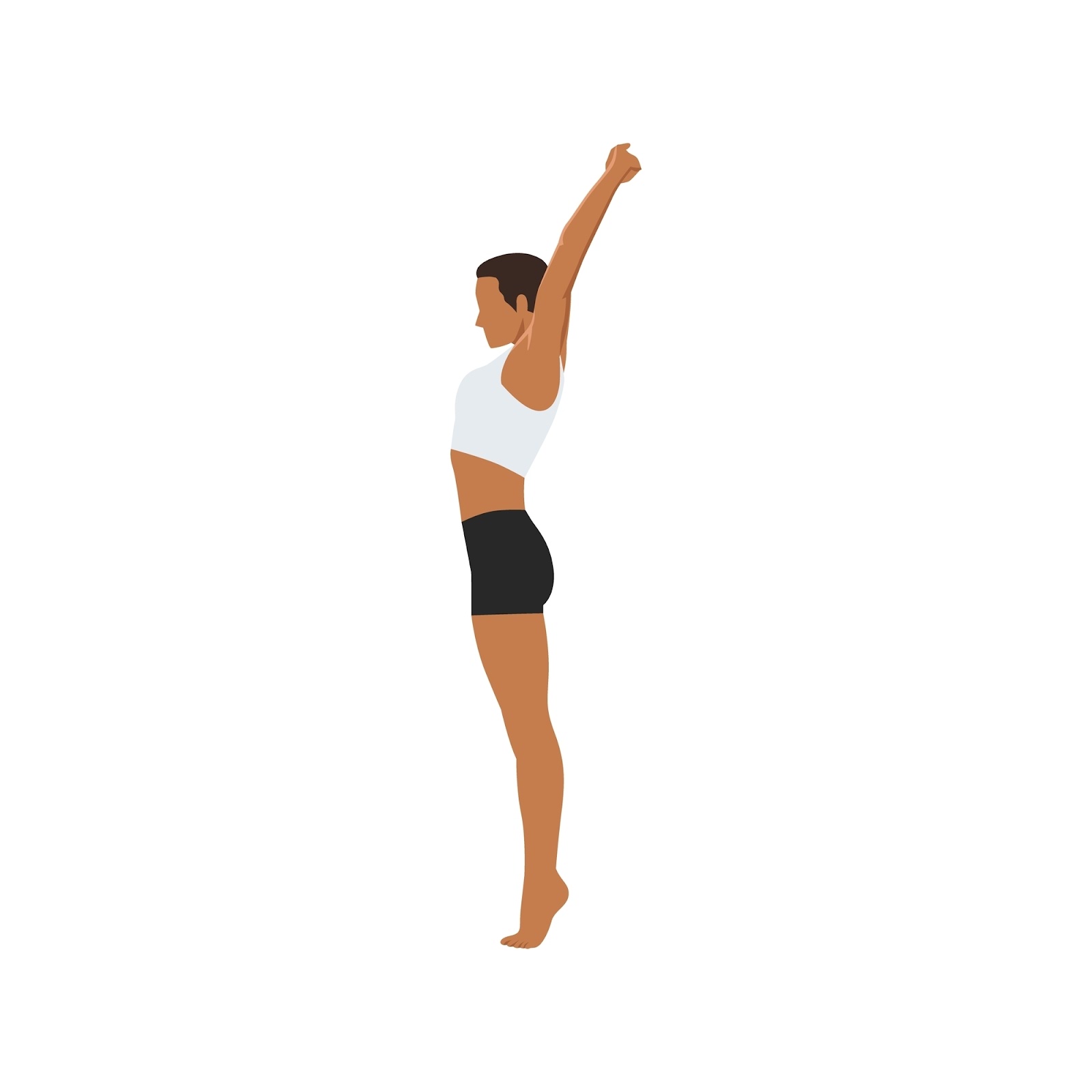 Ayaklarınızı kalça genişliğinde açık tutarak matın üzerine yerleştirin. Bu ayakta durma pozisyonunu koruyun ve kollarınızı gökyüzüne doğru uzatıp avuç içlerinizi başınızın üzerinde birleştirin.