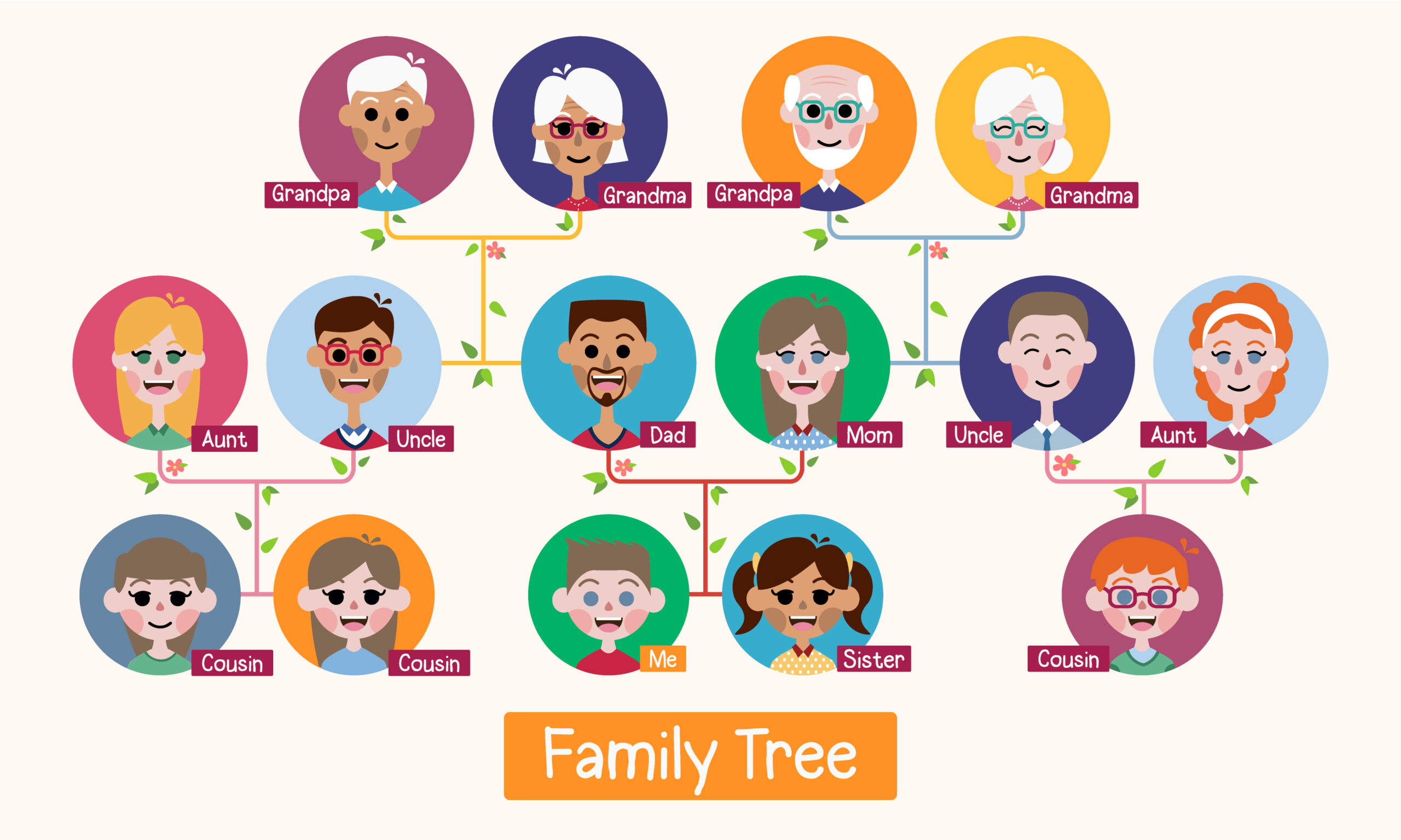 Ardından, kendiniz yerine ailenizin başka bir üyesini esas alarak ve gerekli değişiklikleri yaparak onların soy ağacını da çizebilirsiniz. Örneğin kuzeninizin soy ağacınızı çizerken kendinizi “cousin”, kendi anne ve babanızı “aunt” ve “uncle” şeklinde göstermeniz gerekir.