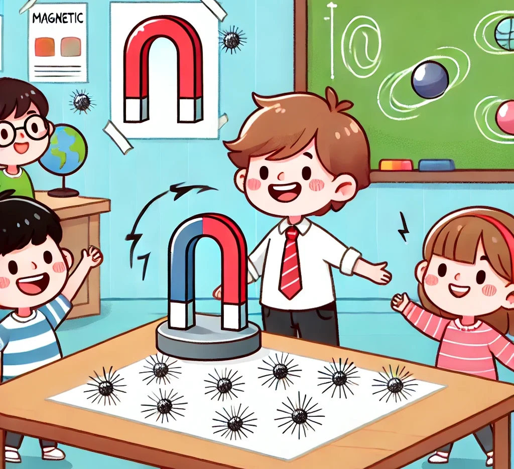 Ne Öğretiyor?: Manyetik alanların mıknatısın etrafındaki görünmez kuvvetler olduğunu ve nesneleri nasıl etkilediğini görüyoruz.
