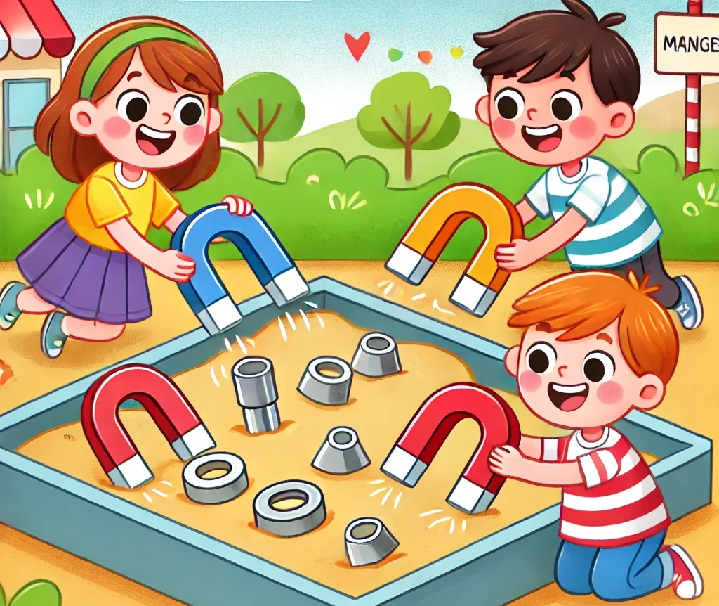 - Çocuklar, mıknatısların aynı kutuplarının birbirini ittiğini ve zıt kutuplarının çektiğini deneyerek öğrenebilir.