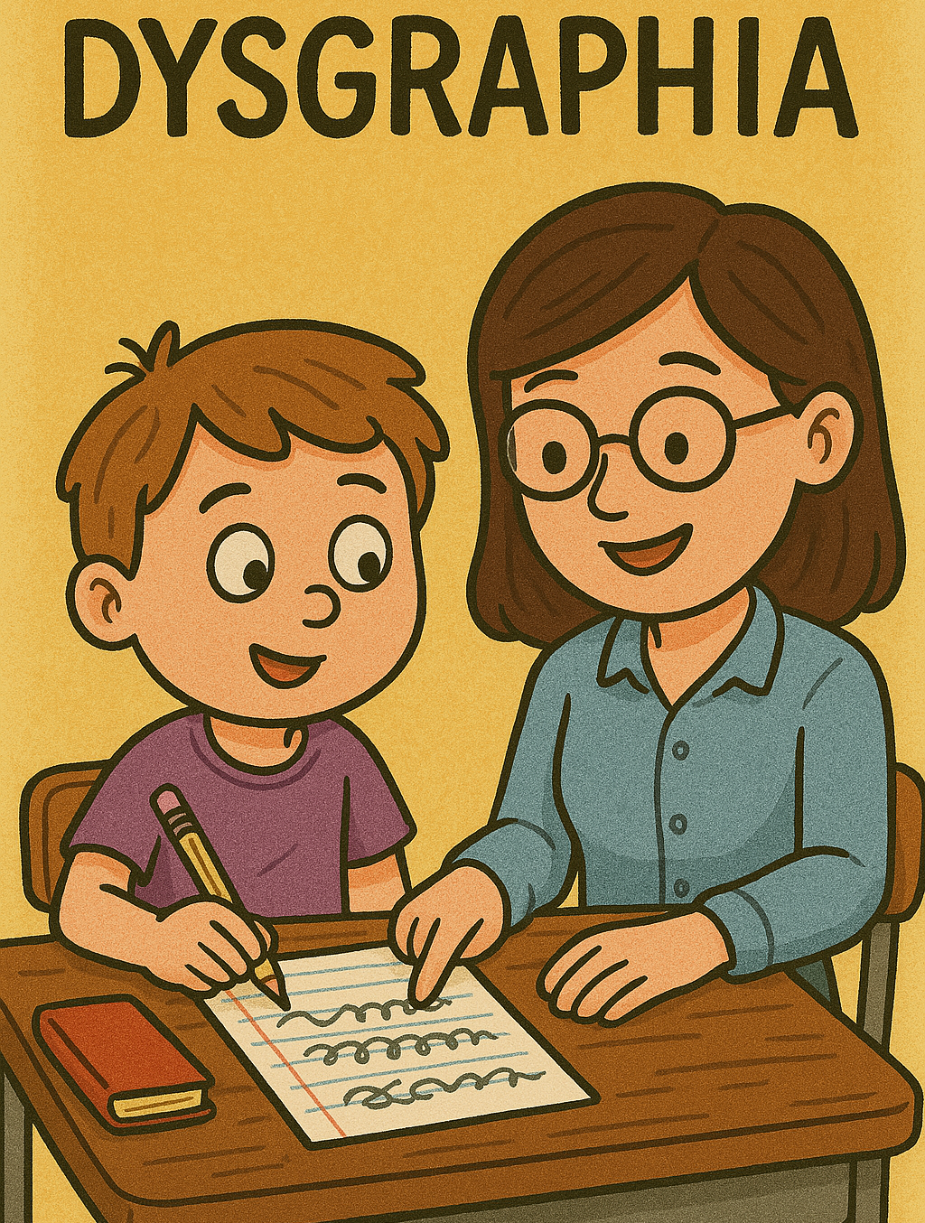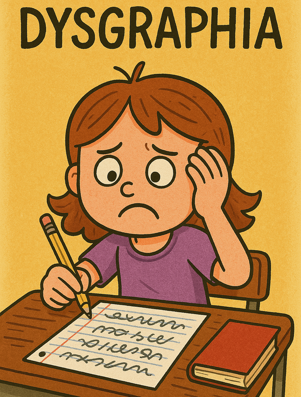 - Motor disgrafi: El yazısını fiziksel olarak üretme sürecinde zorluk yaşanır. El-göz koordinasyonu zayıftır, yazı genellikle yavaş ve düzensizdir. Kalemi tutmakta veya doğru baskıyı uygulamakta zorlanılır.