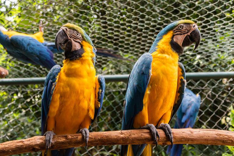 Görünüşünü iyi bildiğimiz bir diğer papağan çeşidi olan mavi-sarı ara papağanı, akrabası olan kırmızı ara papağanı gibi Güney Amerika’da yaşar. 85-90 cm arası bir boya sahiptir. Tıpkı diğer büyük papağan türleri gibi, büyüklüklerinden ötürü evde bakması zor olsa da çocukken sahiplenildiklerinde oldukça iyi dostlar olabilmektedirler. Bu papağanlar genellikle 30-45 yıl arasında yaşarlar.
